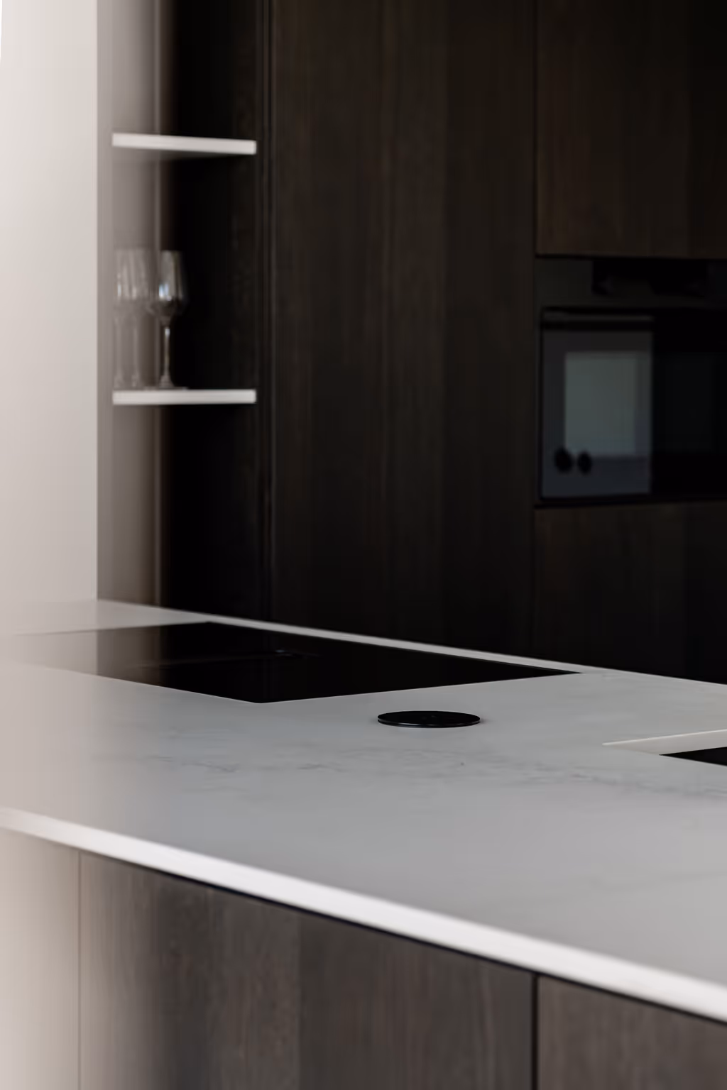 We helpen je ook bij de keuze en plaatsing van het werkblad of de spatwand, in graniet, composiet of keramiek, afgestemd op jouw keuken en wensen.