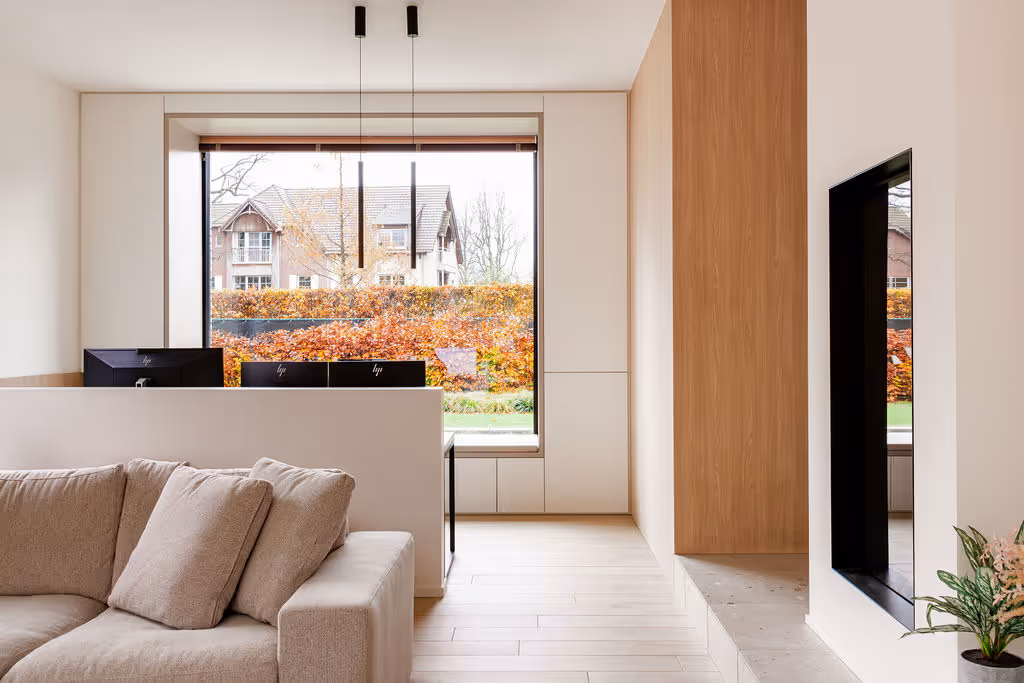In deze villa in Kalmthout werd gekozen voor een ingetogen interieur waarin zacht eikfineer voor warmte en samenhang zorgt.
