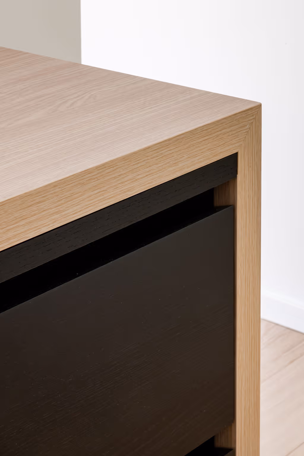 Ook het bureau werd op maat uitgewerkt, helder en functioneel, met aandacht voor functionaliteit.