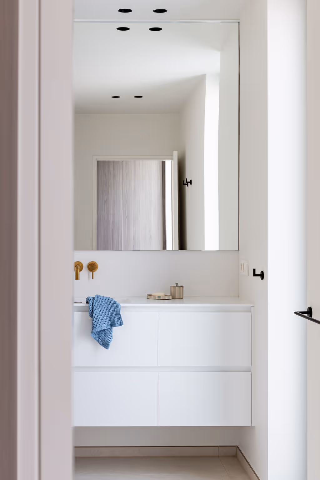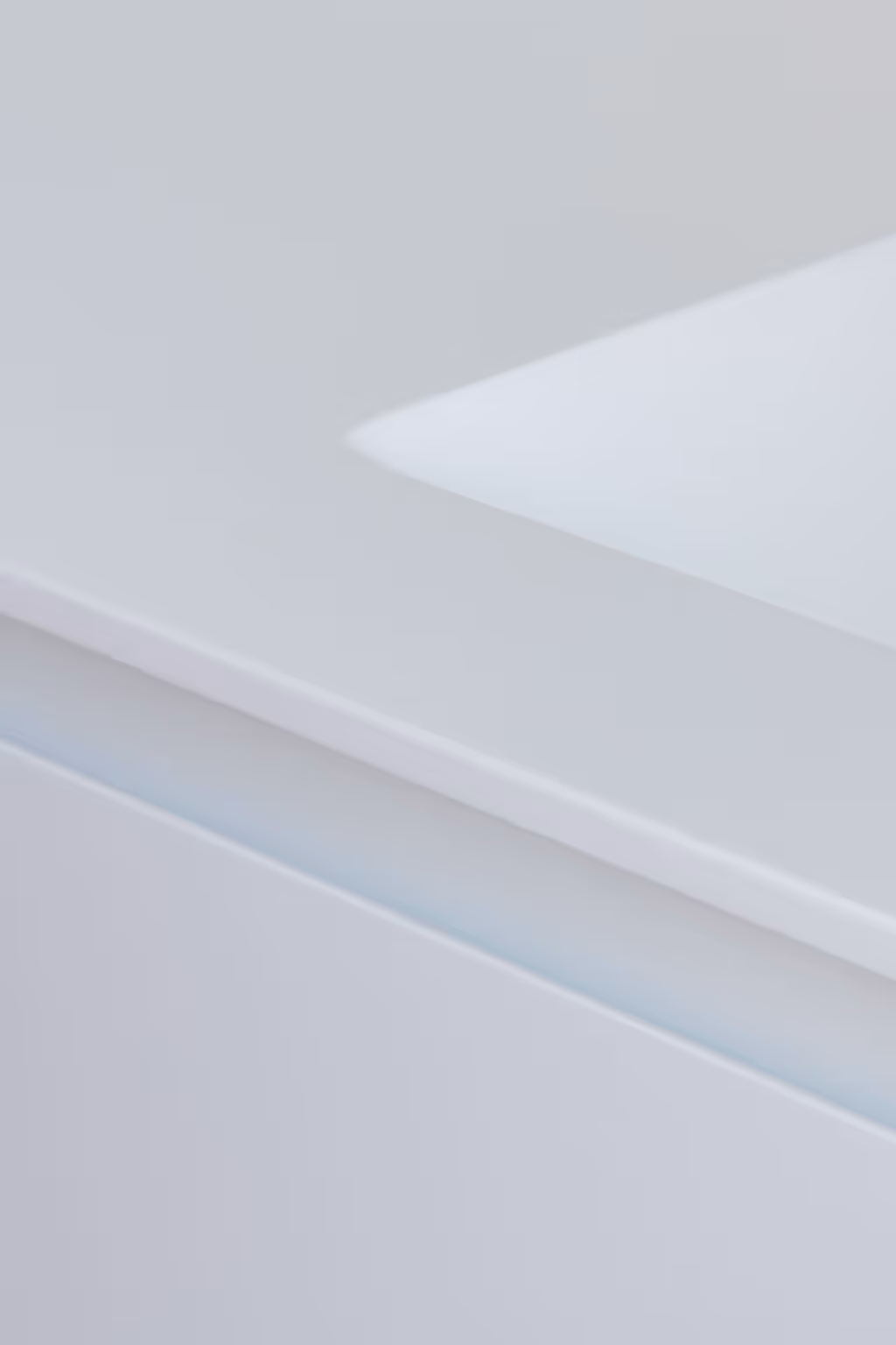 In de badkamer zorgt maatwerk voor een frisse, rustige uitstraling. Afgewerkt in Corian ogen ze licht en tijdloos, met aandacht voor gebruik en onderhoud.
