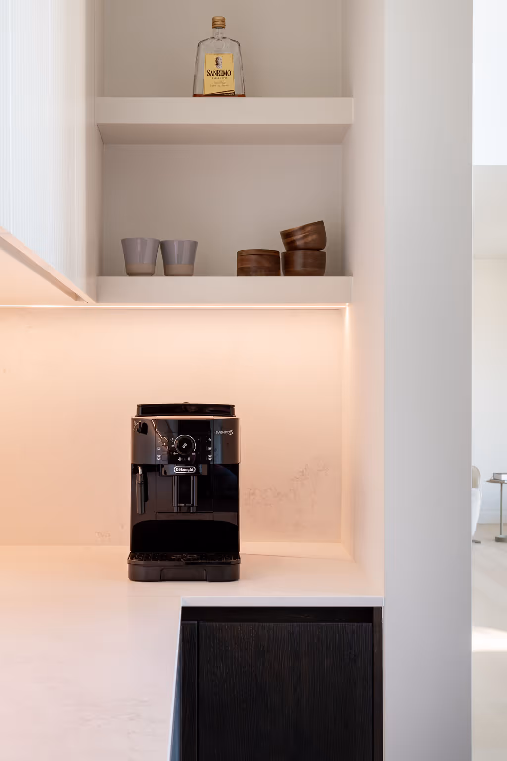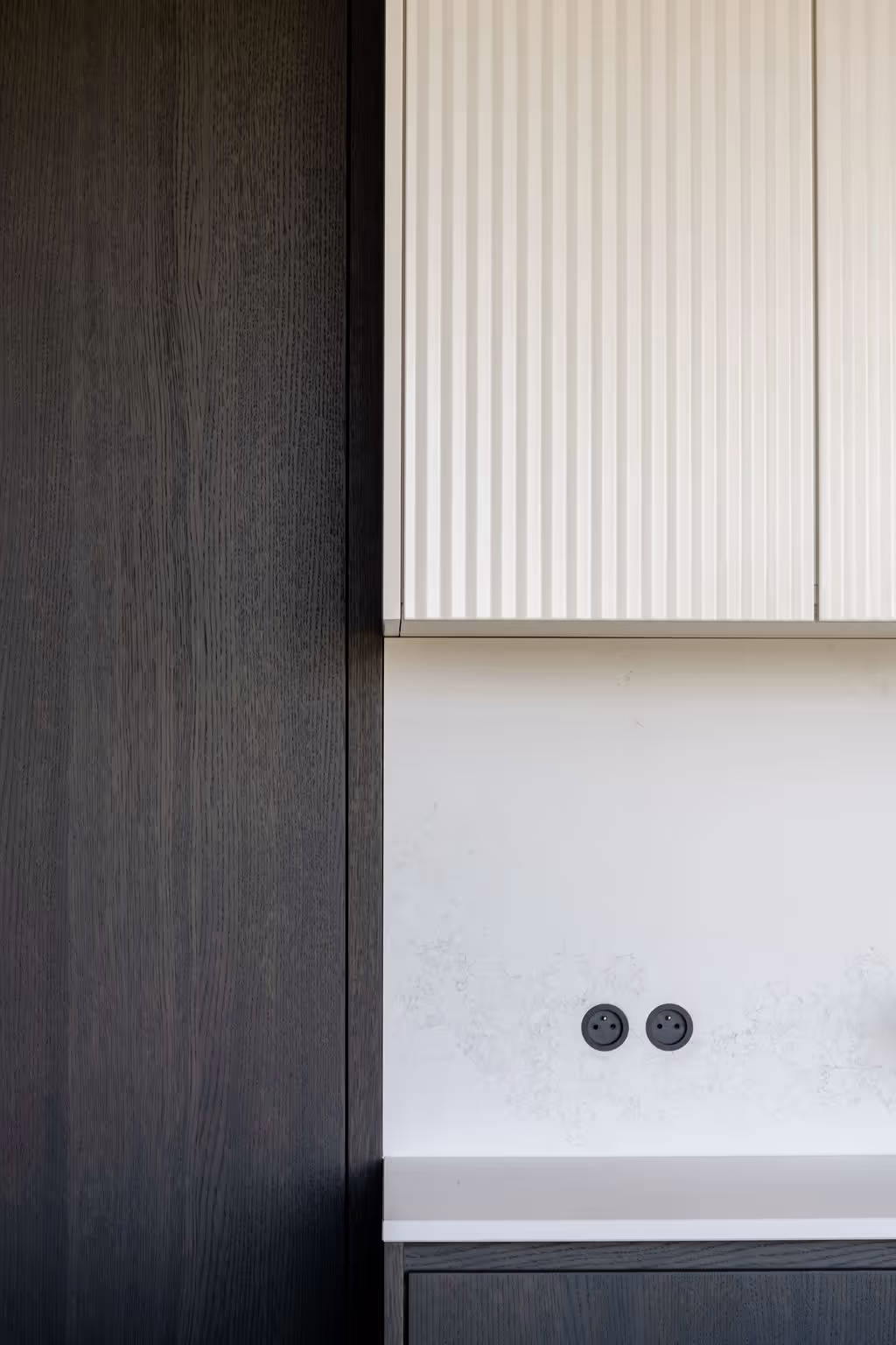 Deze moderne nieuwbouwvilla kreeg karakter door de invulling van maatwerk - dat warmte toevoegt aan strakke architectuur. Doordachte volumes en materialen die de woning laten aanvoelen als een echte thuis.